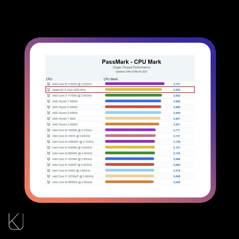 애플은 독보적 위치(시스템과 소프트웨어를 동시에 만드는)에서 오는 장점으로 ARM의 단점(제조사의 ARM CPU마다 최적화를 진행해야 한다.)은 없앨 수 있었고, 그 독보적 위치의 선물로 탄생한 칩이 M1이다.